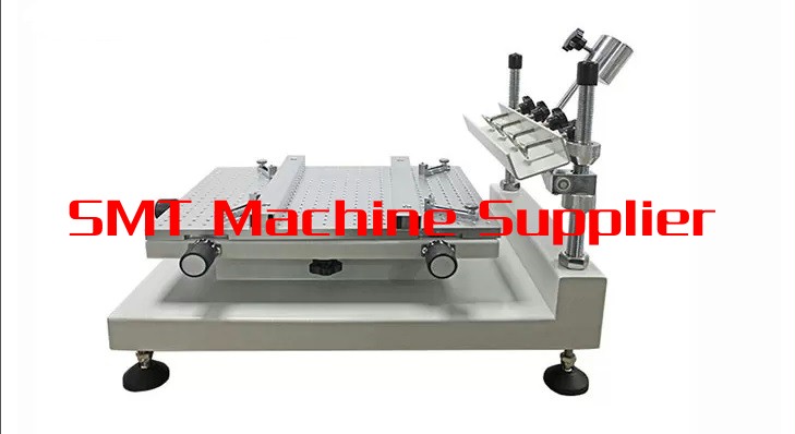 Manual desktop inline screen printer for applying solder paste to the pads of printed circuit boards