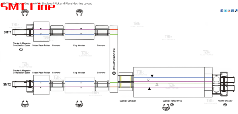 Two-to-One Dual-rail Pick and Place Machine High-speed Layout B