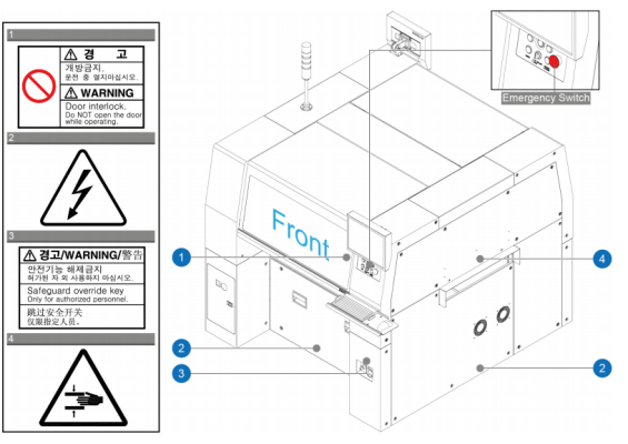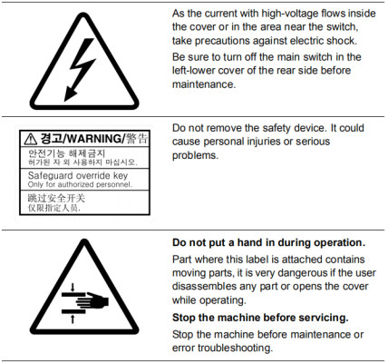 Figure1.1 Safety labels attached on the front part of the machine