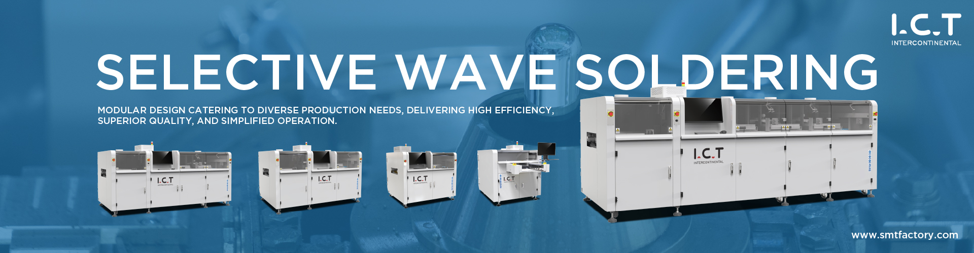 I.C.T Technology with 35 years of experience,as the first generation of SMT China equipment manufacturer,the world's largest manufacturer of SMT equipments,China SMT industry pioneer and leader,R&D and manufacture China's first lead-free reflow oven,lead-free wave soldering machine,full automatic printing machine and other SMT equipments,built our own factory 150 thousand square meters.Our SMT equipments have maintained the first place in the global market share for many years,providing professional plant building solutions and services for global customers. Through our superior resources in China,we will provide a systematic and holistic solution to our customers worldwide!We are worthy of trust!