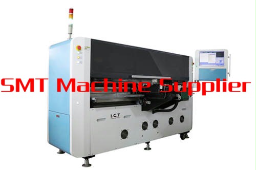 Automatic inline pick&place machine of SMD-components on the surface of printed circuit boards of various sizes