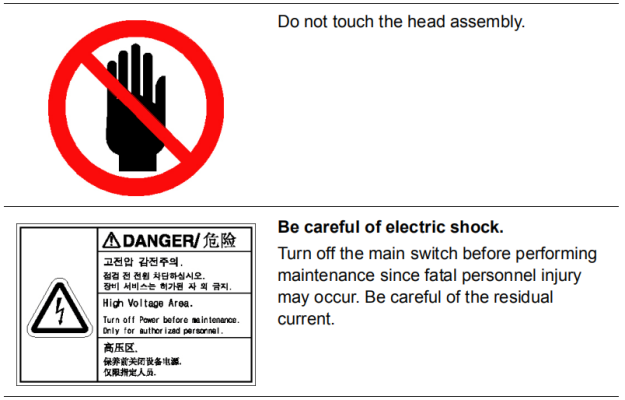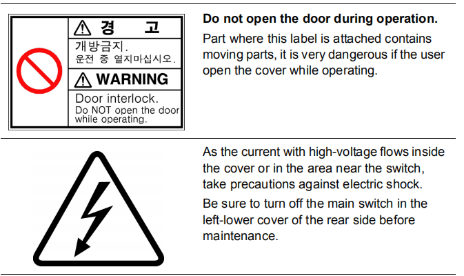 Figure1.3 Safety labels attached to the inside of the machine at the front